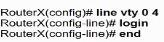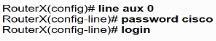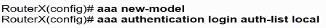 An administrator must enable Telnet access to Router X using the router username and password database for authentication. Which configuration should be applied?