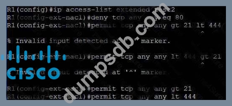 Which access controls list allows only TCP traffic with a destination port range of 22-433, excluding port 80?