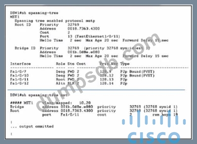 Which two commands ensure that DSW1 becomes root bridge for VLAN 10 and 20?