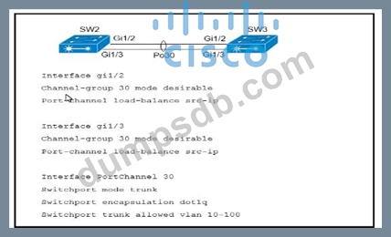 A port channel is configured between SW2 and SW3. SW2 is not running a Cisco operating system. When all physical connections are mode, the port channel does not establish. Based on the configuration excerpt of SW3, what is the cause of the problem?