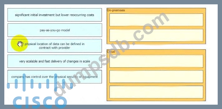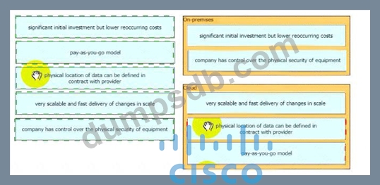 Drag and drop the characteristics from the left to the correct Infrastructure deployment type on the right.