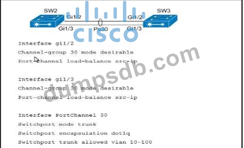 A port channel is configured between SW2 and SW3. SW2 is not running a Cisco operating system. When all physical connections are mode, the port channel does not establish. Based on the configuration excerpt of SW3, what is the cause of the problem?
