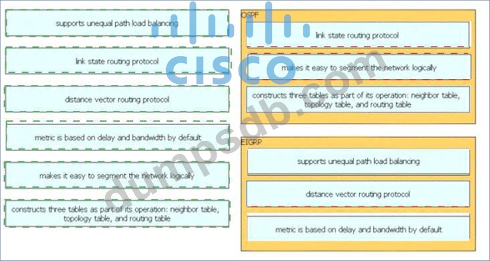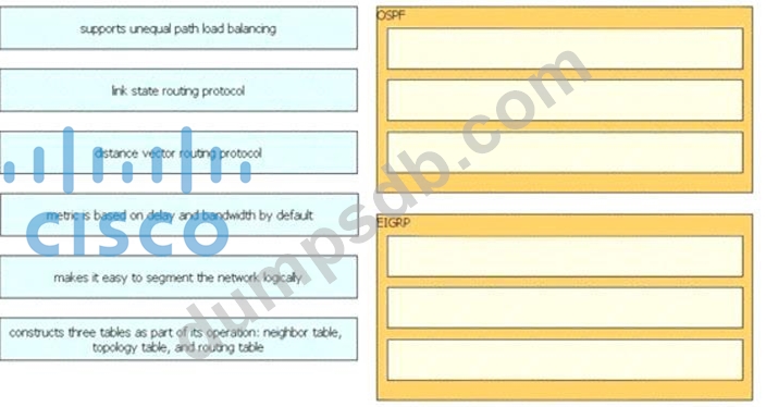 Drag and drop the characteristics from the left onto the routing protocols they describe on the right.