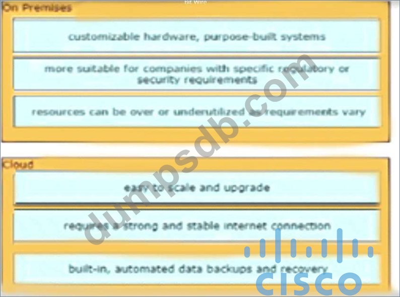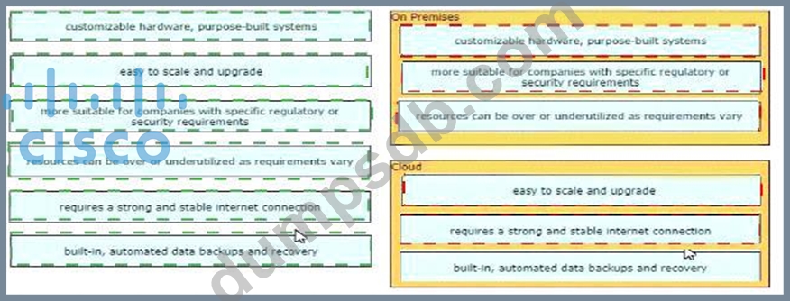 Drag and drop the characteristics from the left onto the correct infrastructure deployment types on the right.