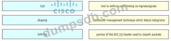Drag and drop the QoS mechanisms from the left onto their descriptions on the right
