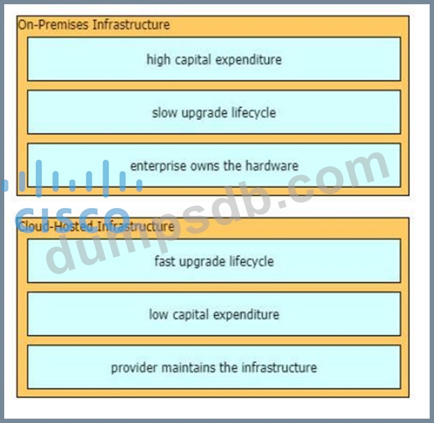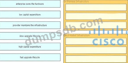 Drag and drop the characteristics from the left onto the infrastructure types on the right.