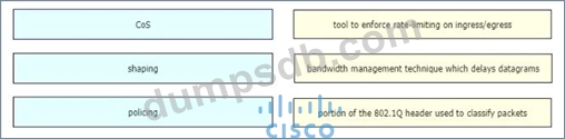 Drag and drop the QoS mechanisms from the left onto their descriptions on the right