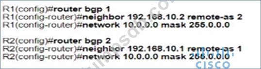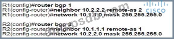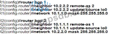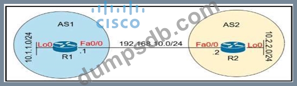 Refer to the exhibit. Which configuration establishes EBGP neighborship between these two directly connected neighbors and exchanges the loopback network of the two routers through BGP?