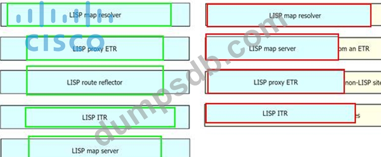 Drag and drop the LISP components from the left onto the function they perform on the right. Not all options are used.