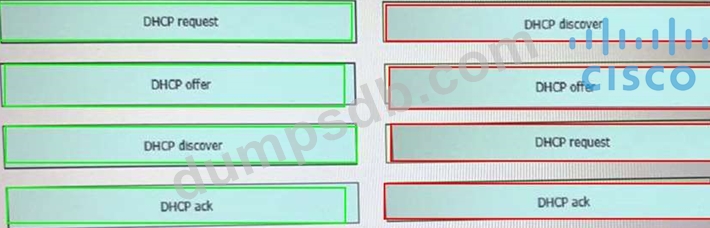 Drag and drop the DHCP messages that are exchanged between a client and an AP into the order they are exchanged on the right.