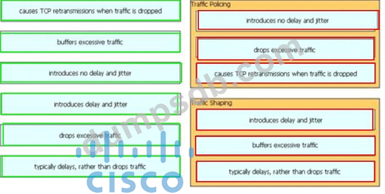 Drag and drop the descriptions from the left onto the QoS components on the right.