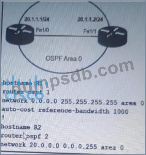 Which command must be applied to R2 for an OSPF neighborship to form?