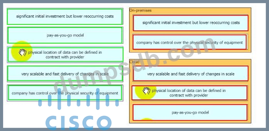 Drag and drop the characteristics from the left to the correct Infrastructure deployment types on the right.