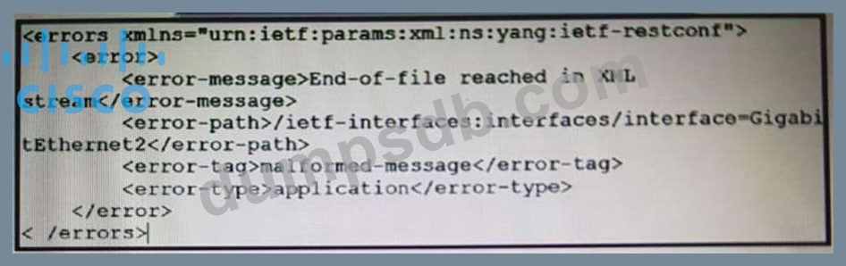Refer to the exhibit. An engineer is using XML in an application to send information to a RESTCONF-enabled device. After sending the request, the engineer gets this response message and a HTTP response code of 400. What do these responses tell the engineer?