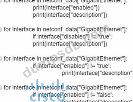 Which Python code snippet prints the descriptions of disabled interfaces only?