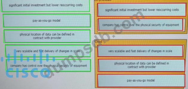 Drag and drop the characteristics from the left onto the correct infrastructure deployment types on the right.