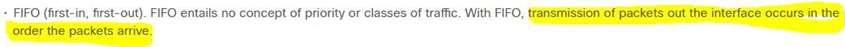 Which QoS queuing method transmits packets out of the interface in the order the packets arrive?