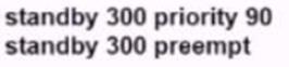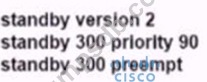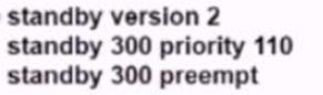 An engineer must configure HSRP group 300 on a Cisco IOS router. When the router is functional, it must be the must be the active HSRP router. The peer router has been configured using the default priority value.