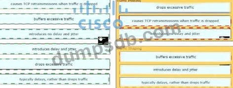 Drag and drop the description from the left onto the correct QoS components on the right.