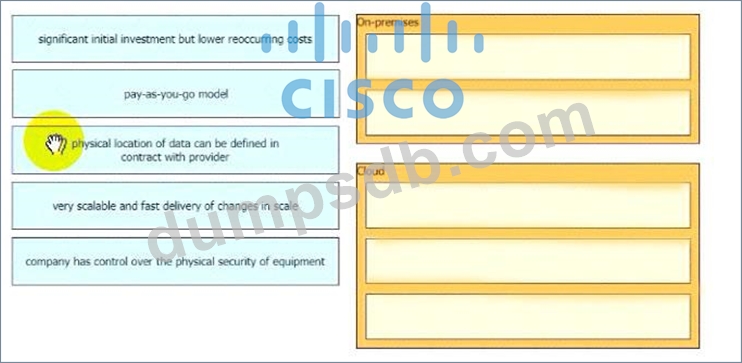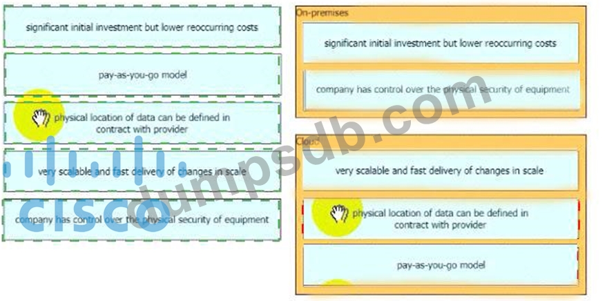 Drag and drop the characteristics from the left to the correct Infrastructure deployment type on the right.