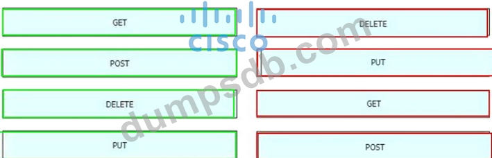 An engineer is working with the Cisco DNA Center API Drag and drop the methods from the left onto the actions that they are used for on the right.