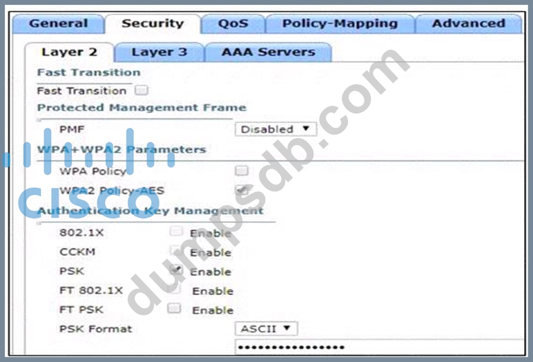Based on the configuration in this WLAN security setting, Which method can a client use to authenticate to the network?
