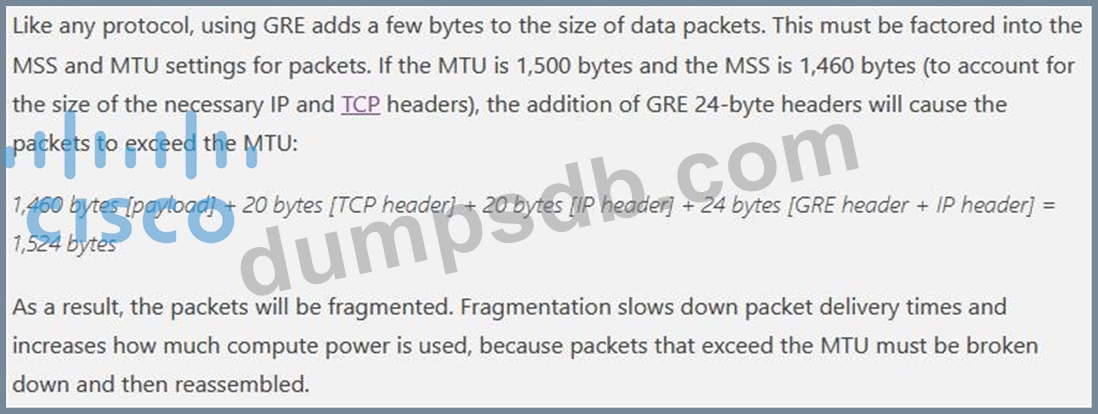 MTU has been configured on the underlying physical topology, and no MTU command has been configured on the tunnel interfaces. What happens when a 1500-byte IPv4 packet traverses the GRE tunnel from host X to host Y, assuming the DF bit is cleared?