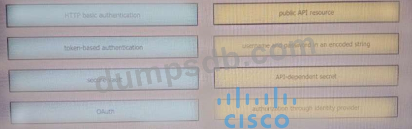 Drag and drop the REST API authentication method from the left to the description on the right.