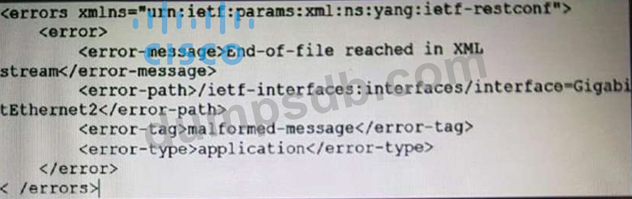 Refer to the exhibit. An engineer is using XML in an application to send information to a RESTCONF-enabled device. After sending the request, the engineer gets this response message and a HTTP response code of 400. What do these responses tell the engineer?