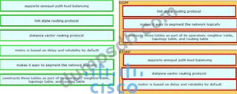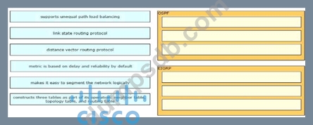 Drag and drop the characteristics from the left onto the correct routing protocol types on the right.