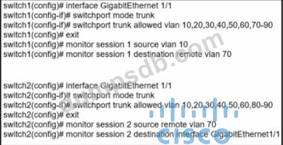 A network administrator configured RSPAN to troubleshoot an issue between switchl and switch2. The switches are connected using interface GigabitEthernet 1/1 An external packet capture device is connected to swich2 interface GigabitEthernet1/2 Which two commands must be added to complete this configuration?