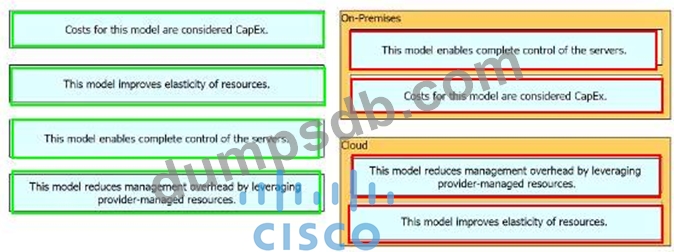 Drag and drop the characteristics from the left onto the infrastructure deployment models on the right.