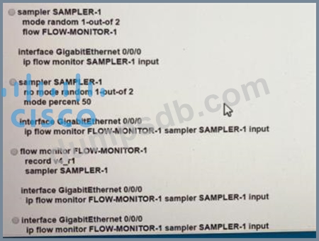 Which command set must be added to the configuration to analyze 50 packets out of every 100?
