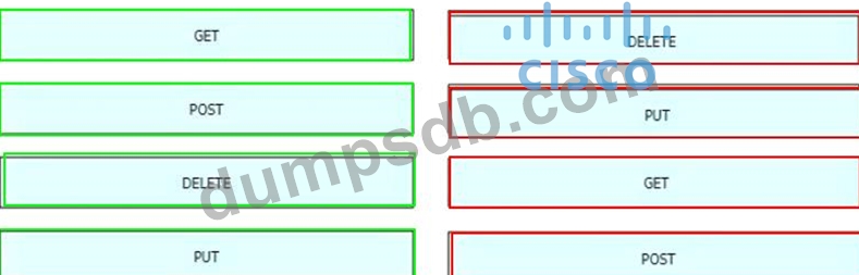 An engineer is working with the Cisco DNA Center API Drag and drop the methods from the left onto the actions that they are used for on the right.