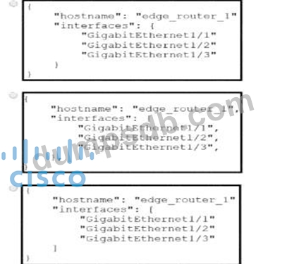 Which exhibit displays a valid JSON file?