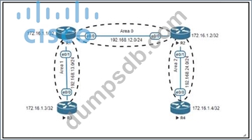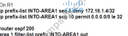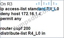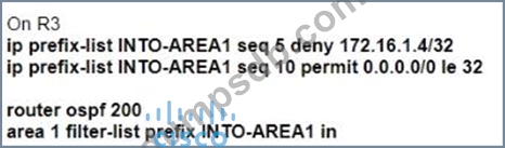 An engineer must create a configuration that prevents R3from receiving the LSA about 172.16.1.4/32.Which configuration set achieves this goal?