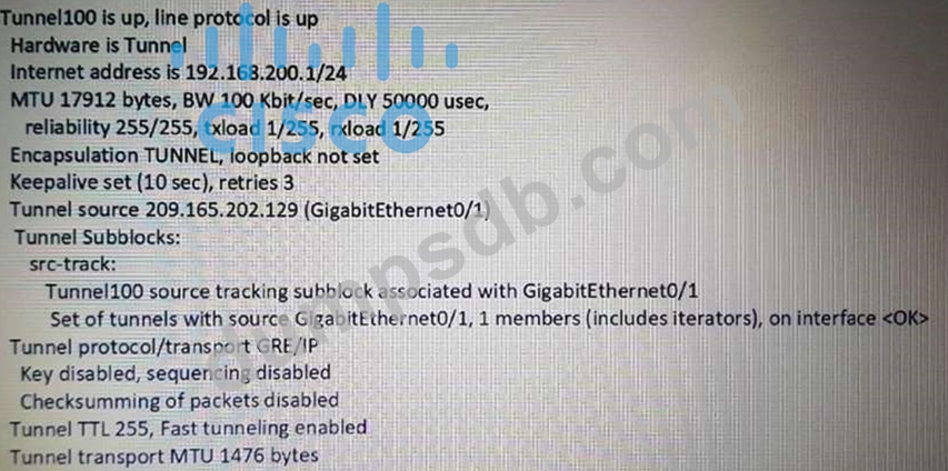 Refer to the exhibit. A network engineer configures a GRE tunnel and enters the show Interface tunnel command. What does the output confirm about the configuration?