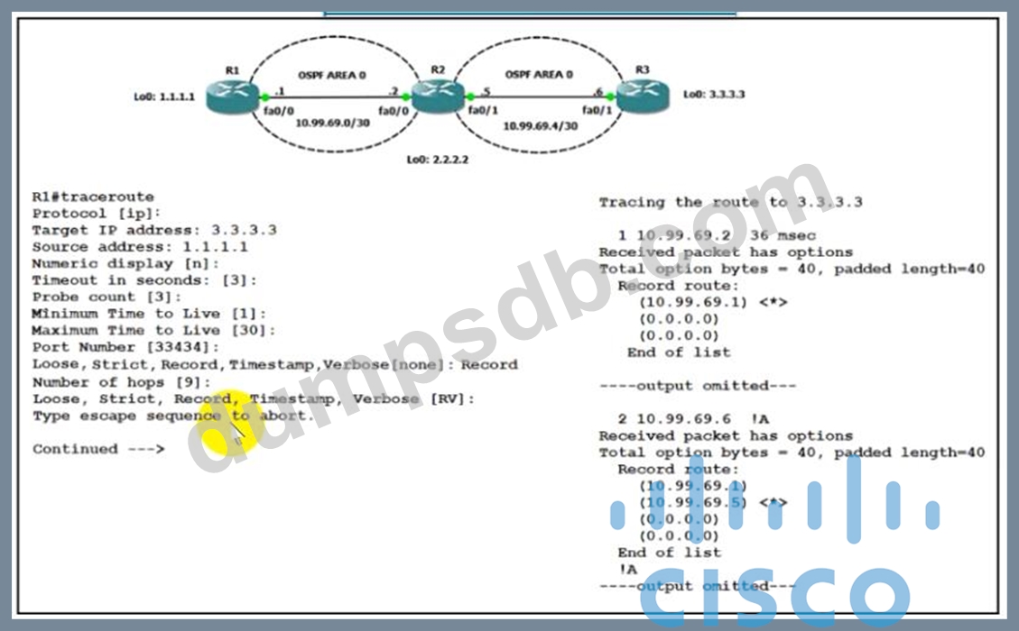 The traceroute fails from R1 to R3. What is the cause of the failure?