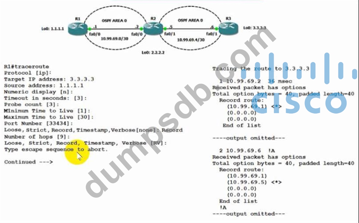 The traceroute fails from R1 to R3. What is the cause of the failure?