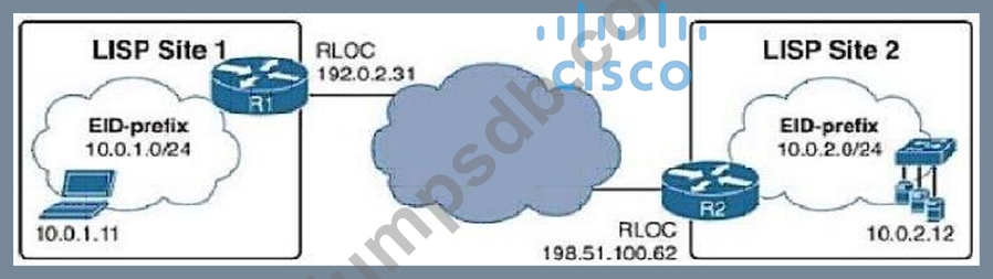 Whenever a packet from 10.0.1.0/24 to 10.0.2.0/24 would arrive at R1, it would use its LISP mapping tables just like in ordinary LISP to discover that the packet has to be LISP encapsulated and tunneled toward 198.51.100.62, and vice versa. The LISP data plane is reused in OTP and does not change; however, the native LISP mapping and resolving mechanisms are replaced by EIGRP.