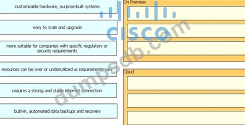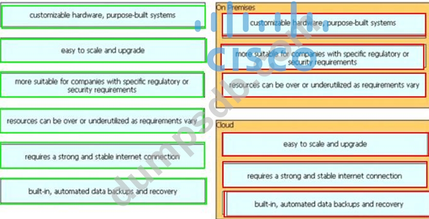 Drag and drop the characteristics from the left onto the appropriate infrastructure deployment types on the right.