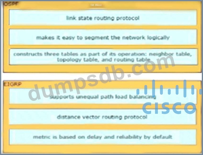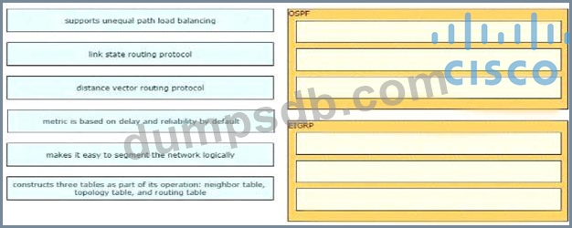 Drag and drop the characteristics from the left onto the correct routing protocol types on the right.