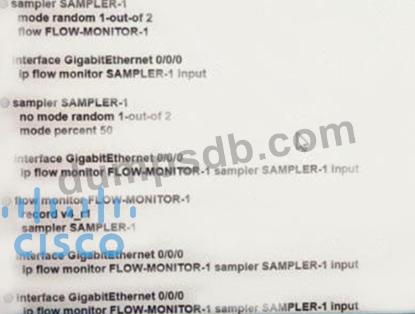 Which command set must be added to the configuration to analyze 50 packets out of every 100?