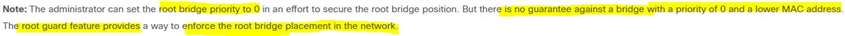In a traditional 3 tier topology, an engineer must explicitly configure a switch as the root bridge and exclude it from any further election process for the spanning-tree domain. Which action accomplishes this task?