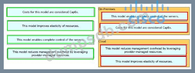 Drag and drop the characteristics from the left onto the infrastructure deployment models on the right.