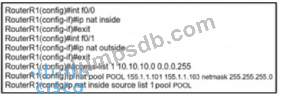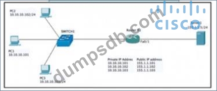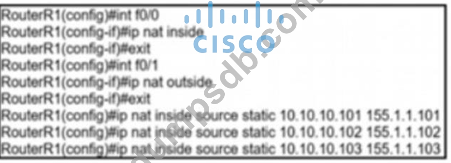 Refer to the exhibit. Which set of commands on router r R1 Allow deterministic translation of private hosts PC1, PC2, and PC3 to addresses in the public space?
