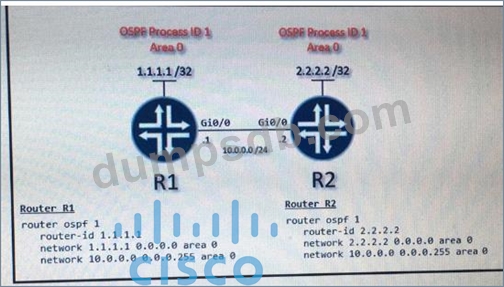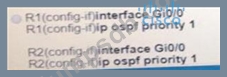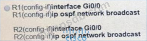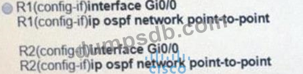 A network engineer is configuring OSPF between router R1 and router R2. The engineer must ensure that a DR/BDR election does not occur on the Gigabit Ethernet interfaces in area 0. Which configuration set accomplishes this goal?