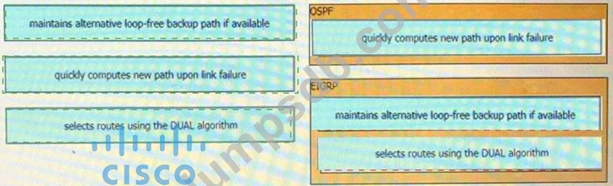 Drag and drop the characteristics from the left onto the routing protocols they describe on the right.