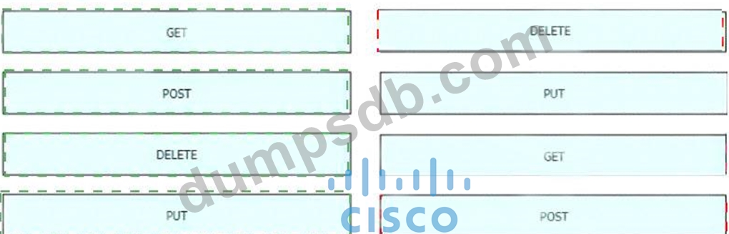 An engineer is working with the Cisco DNA Center API Drag and drop the methods from the left onto the actions that they are used for on the right.