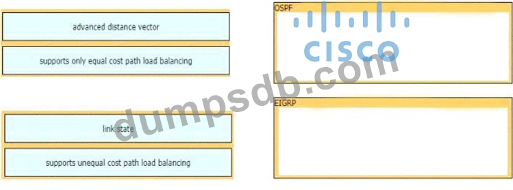 Drag and drop the descriptions from the left onto the routing protocol they describe on the right.